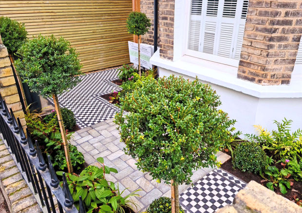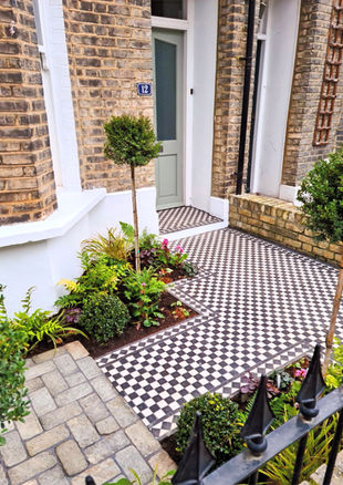 We brought our distinctive contemporary touches to this London front garden, complete with classic Victorian tiling